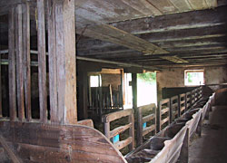 Wir bewirtschaften unseren Hof nicht selbst, sondern haben ihn verpachtet. Unser Pächter, ein Absolvent der Universität für Bodenkultur, benutzt den Hof für experimentelle landwirtschaftliche Kulturen und züchtet Mangalitza-Schweine. Er produziert auch selbstgepressten Most.